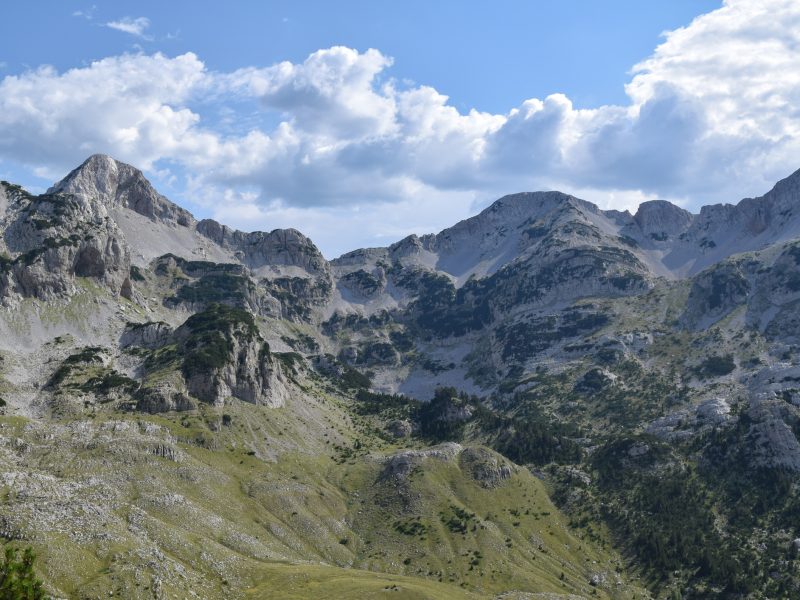 A short climb from a calm lake to a broad look over Sutjeska’s ridges and bowls.