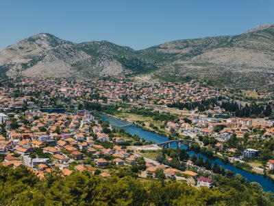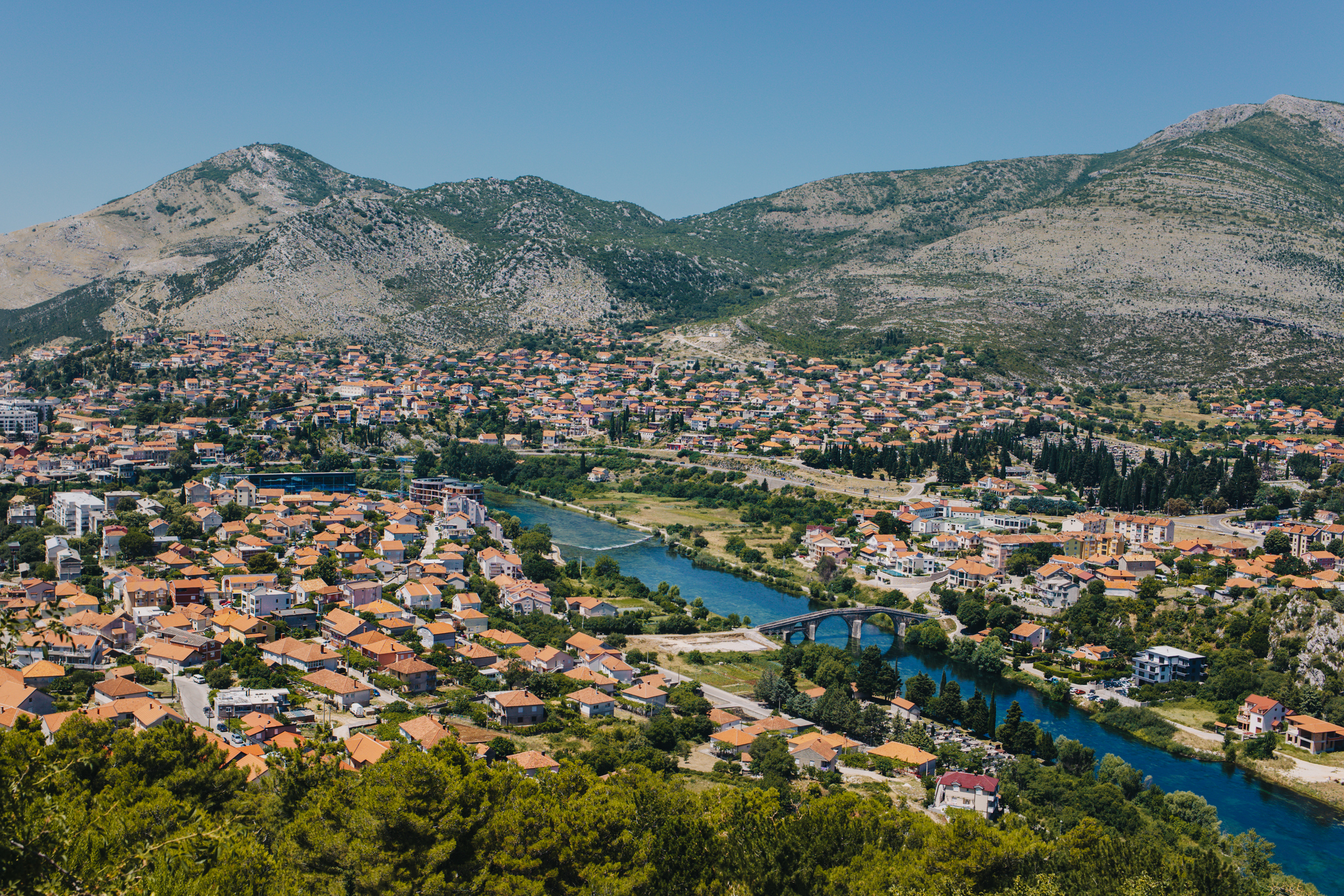 Bridges help place Trebinje in its valley. Walking the span and then stepping into the old town or towards the vineyards links river, city, and countryside in a simple loop.