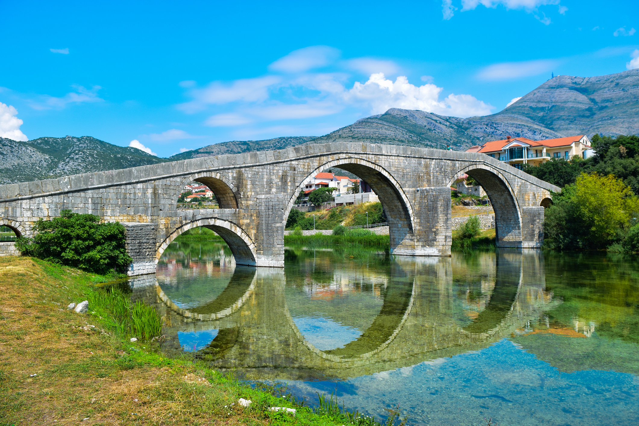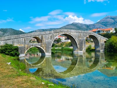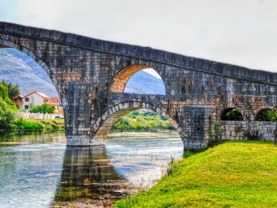 Arslanagića Bridge steps across the Trebišnjica in a rhythm of pale stone arches, an Ottoman span moved and rebuilt in the twentieth century and now one of Trebinje’s calmest river angles. It is a simple stop: walk the deck, frame the curve from each bank, and sit for a coffee with the bridge in view. The setting matters as much as the structure; reflections sit green in late light and the river moves quietly under the parapets.
