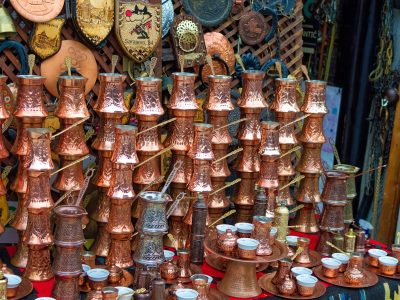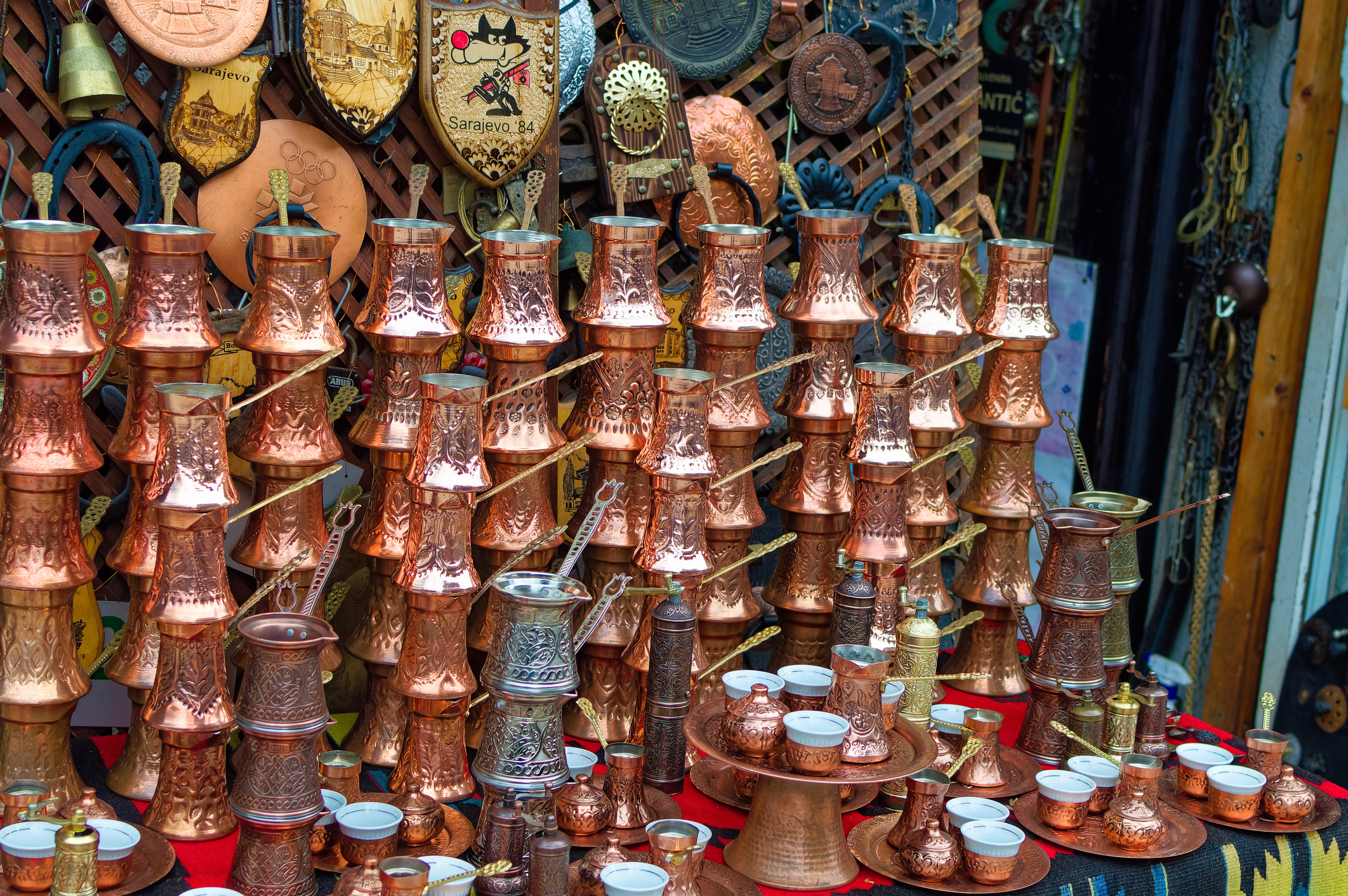 Time your visit for early or late light. Morning is calm and clear; late afternoon warms wood and stone and slows foot traffic. Midday is crowded, especially in summer. If you want a focused route, begin with a copper lane, step into one interior for context, then make a short river loop to Latin Bridge and Vijećnica before returning for a sweet and coffee. Keep to the right in narrow streets, ask before photographing people at work, and dress modestly for mosque interiors. Prices are posted, stalls take cash and cards, and small items pack well. Let the coffee ritual set the pace: thick kahva in a džezva with a small glass of water is the classic order.