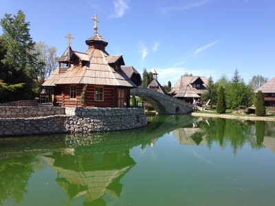 Etno Selo Stanišići is a folk-style village built around calm channels, wooden mills and small stone bridges. It is an easy stop for families and a good leg stretch on a Semberija day. You walk flat paths over bridges, sit for a drink by the water, and take simple photos with stone and wood against green banks. The site is compact, so timing and pacing keep it pleasant even when it is busy.