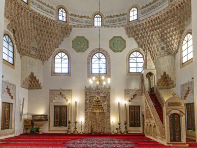 The Gazi Husrev-beg complex is the heart of Sarajevo’s old centre: a cool, shaded mosque courtyard with a stone fountain, a prayer hall with simple lines and light, a clock tower that marks prayer times, and small museum rooms that thread city life to faith and learning. Outside, copper and coffee lanes wrap the walls; inside, the pace drops and sounds soften.