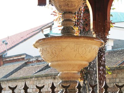 Baščaršija, a few minutes’ walk south from the Sebilj fountain, set around a courtyard off the bazaar lanes