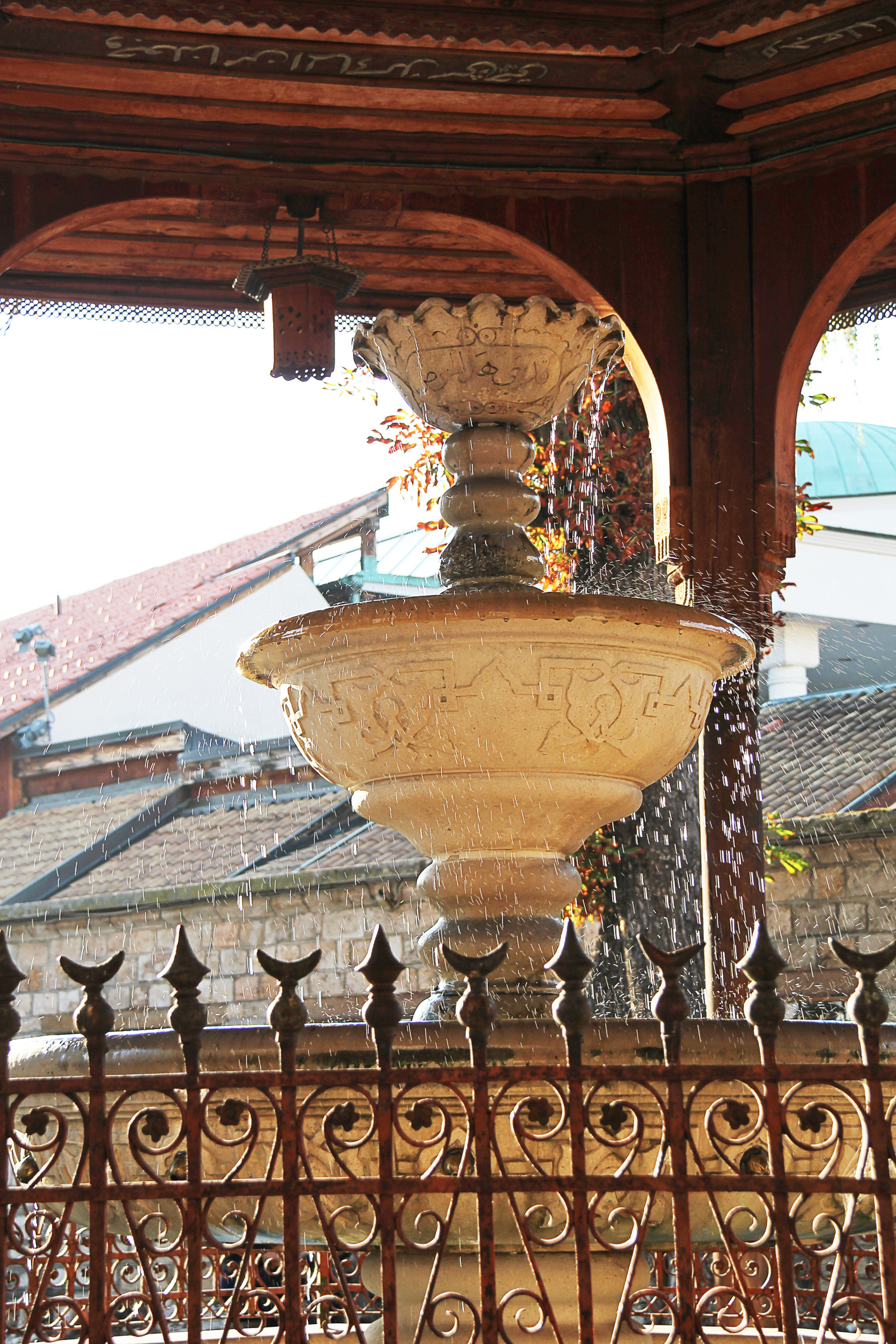 Pronunciation: Gazi Husrev-beg [GAH-zee HOOS-rev beg] • Baščaršija [bash-CHAR-shee-ya] • sahat-kula (clock tower) [SAH-hat KOO-la]