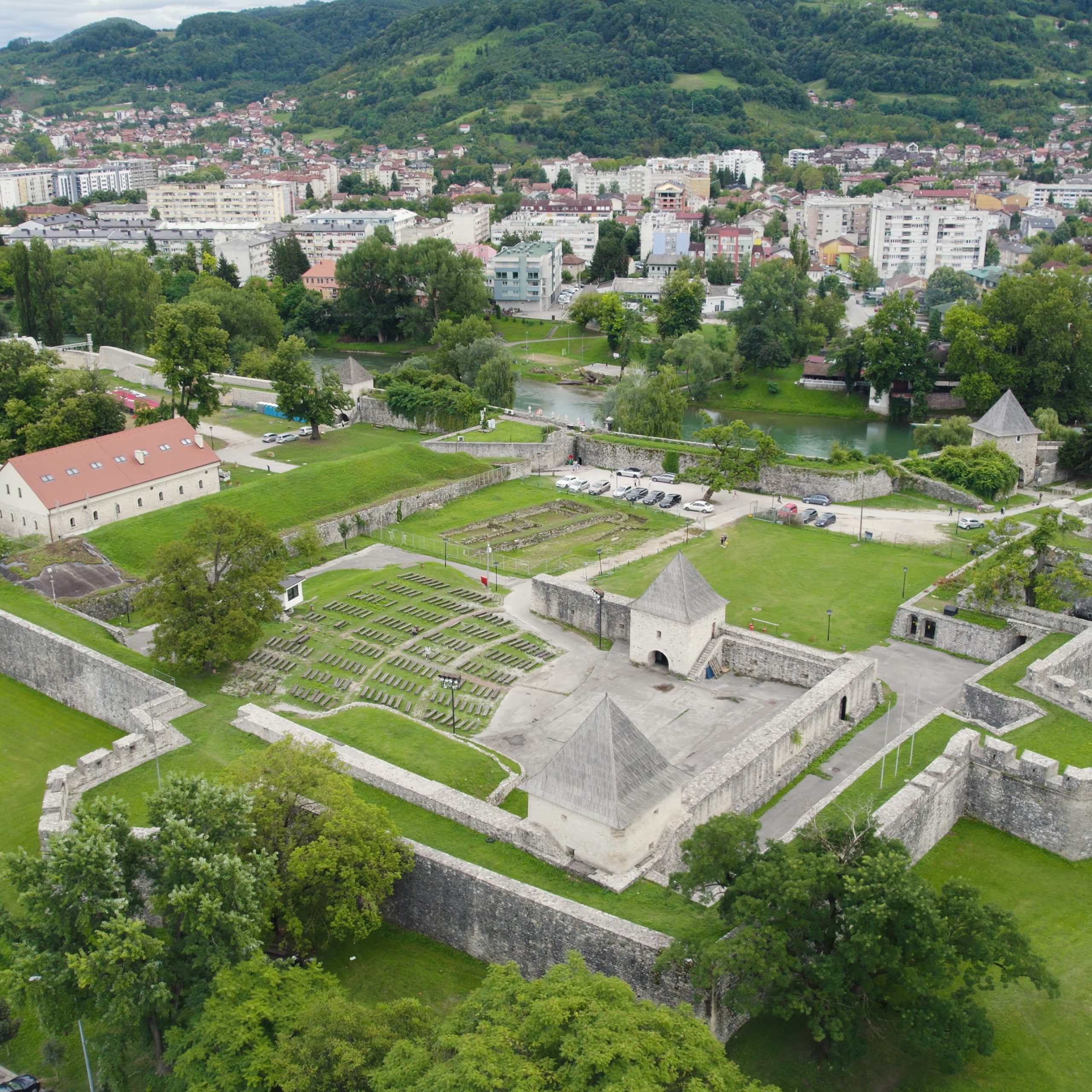 Kastel Fortress is Banja Luka’s river fort, low walls and bastions set above the Vrbas with lawns, inner yards, and short parapet walks. It is easy to reach from the centre, so you can step from cafés to stone in minutes and see the river turn below the walls. Most of the exterior is free to explore; interior rooms open for small exhibits or events at times. The setting is the point: stone against water and trees, with the city just behind.