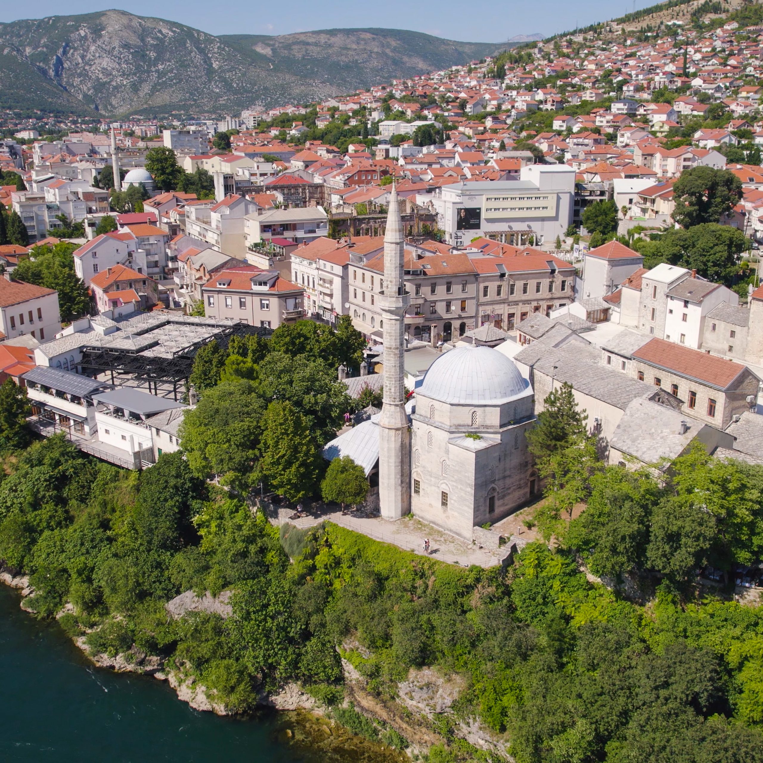 East bank of the Neretva in Mostar’s old town, a short walk from Stari Most