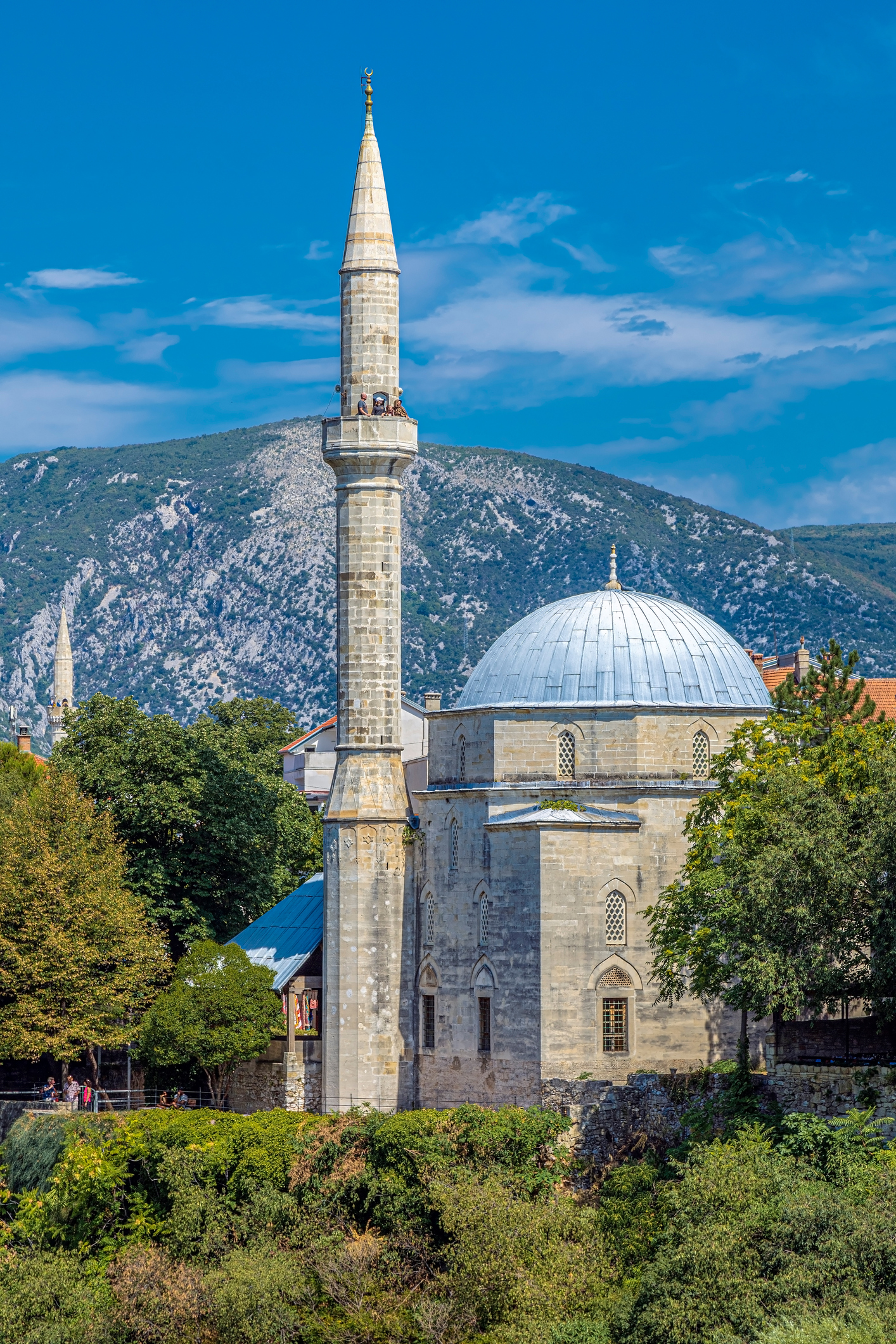 The mosque sits a few minutes from the bridge and the copper lanes, so you can read Mostar from above and then walk the textures that fill the frame. The climb and the courtyard together make a simple, complete stop.