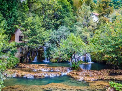 Martin Brod shows the river in pieces: channels, shelves, and quiet inlets beneath trees. Walk the loop, then read the river as a whole later at Štrbački Buk. The pairing makes the park’s character clear without long transfers.