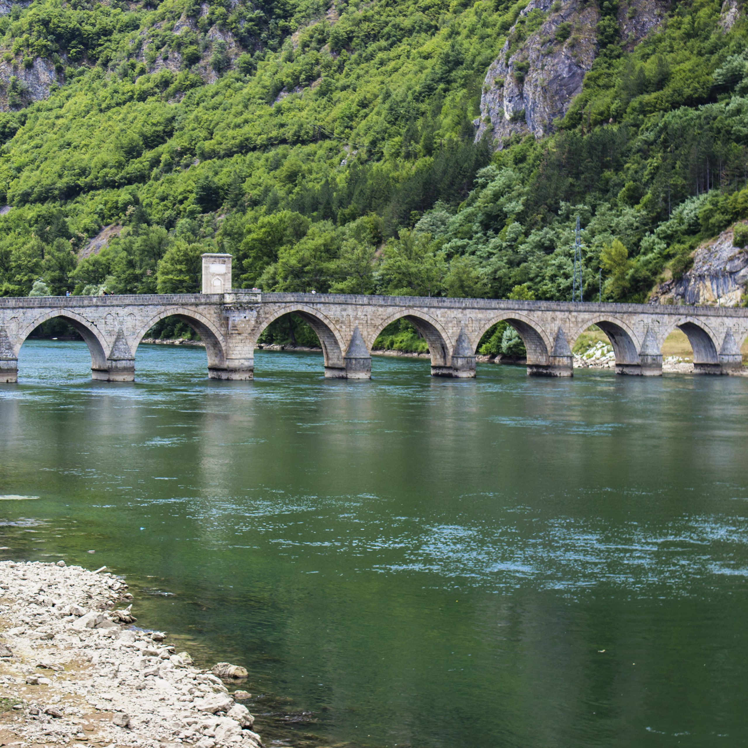 The Mehmed Paša Sokolović Bridge steps across the Drina in a low rhythm of pale arches, a sixteenth-century span tied closely to the town and its literature. Today it is a quiet place to watch the river move along green bends and to link a short town loop with a boat angle from below. The bridge and its setting form a UNESCO World Heritage site; treat it as both a lived crossing and a place of memory.