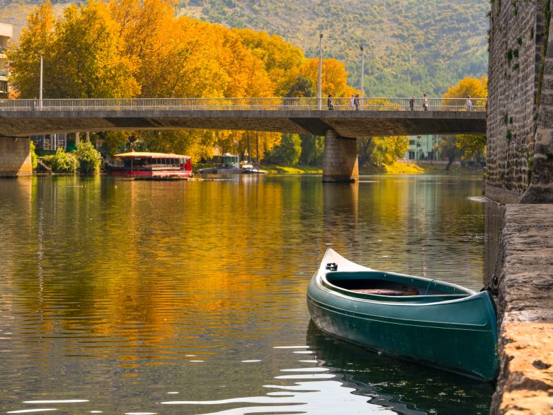 Late-light city walks, warm river decks, harvest tastings near Trebinje and Mostar.